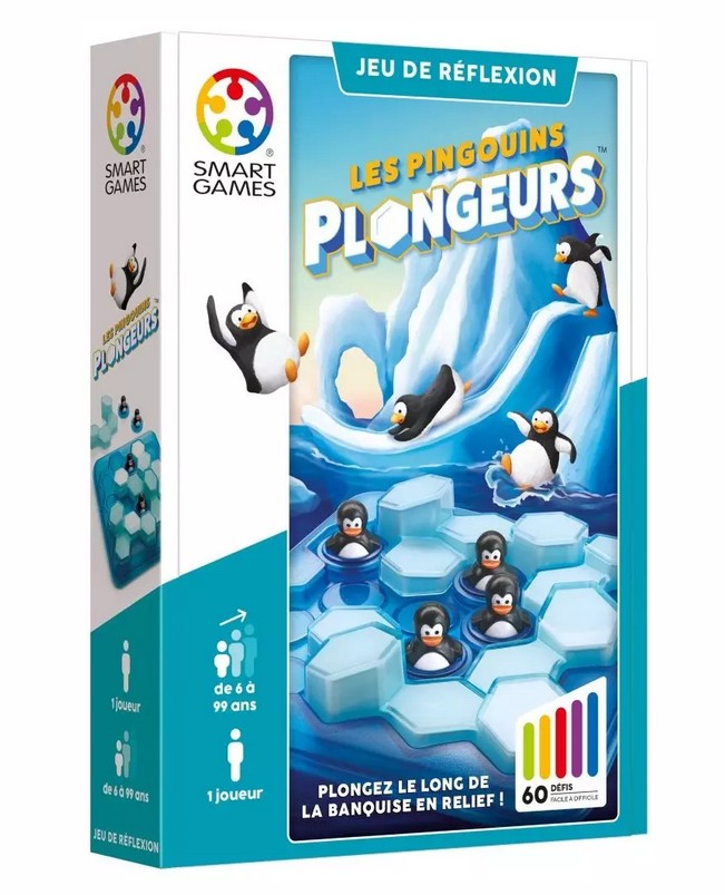 Les Pingouins Plongeurs vous propose 60 défis évolutifs, le matériel en 3D et la thématique des pingouins sympathiques en font un jeu ludique, et logique. Son coffret de rangement le rend idéal pour les voyages.